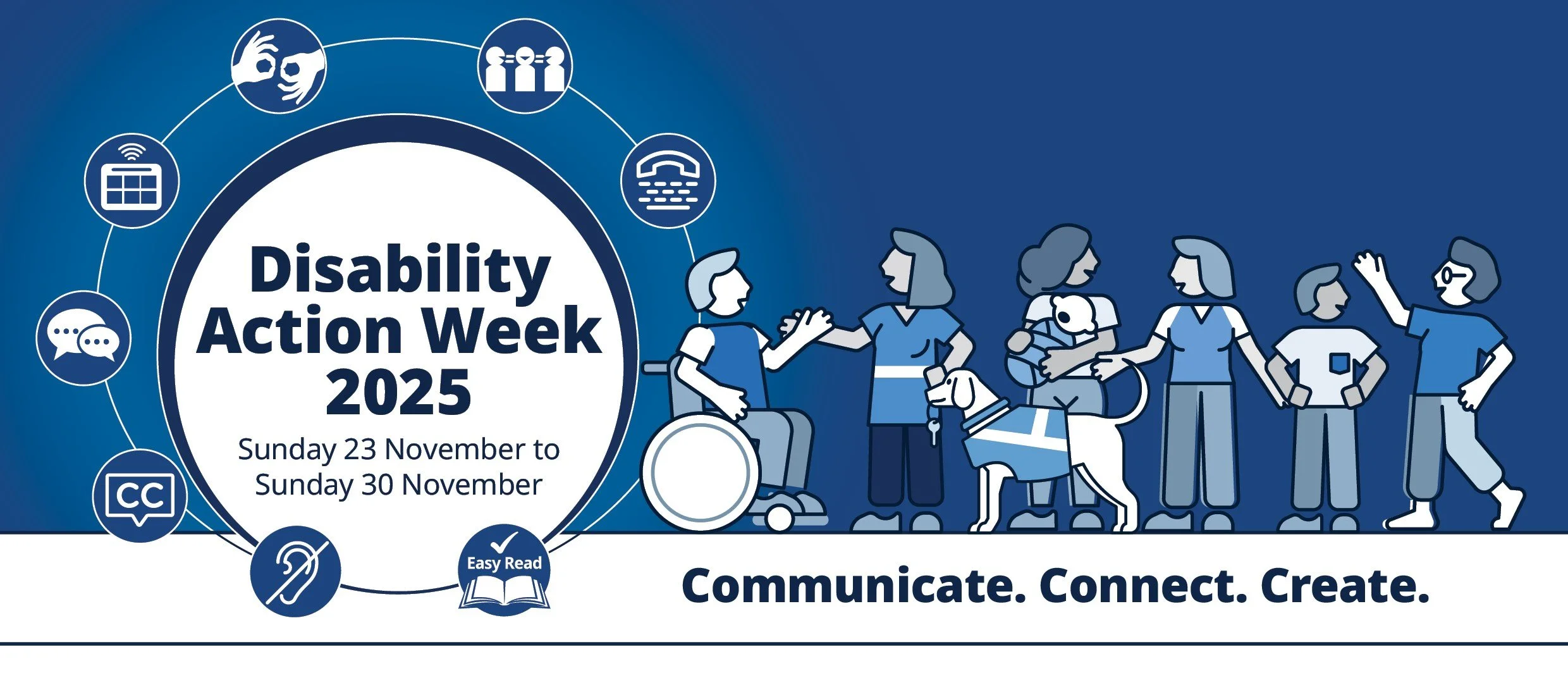 The 2025 theme - Communicate. Connect. Create. - reminds us that everyone has a role in improving access for people with disability. When we communicate in accessible ways, connect with others, and create spaces where everyone belongs, our whole community becomes stronger.
